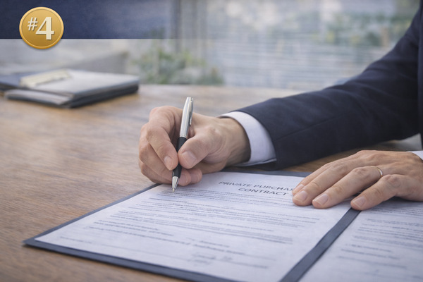 After legal review, the private purchase contract (Contrato Privado de Compraventa) is signed.
