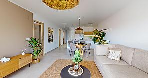This modern apartment forms part of a high-quality residential development in El Raso, near Guardamar del Segura, designed for comfortable Mediterranean living in a peaceful natural environment. The project combines contemporary architecture with bright interiors and well-planned layouts that create spacious and welcoming living areas. Open-plan living spaces and large windows maximise natural light and provide a pleasant connection to the outdoor terrace.